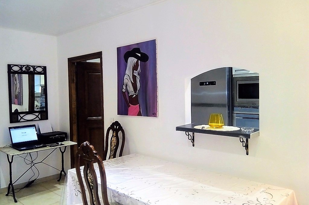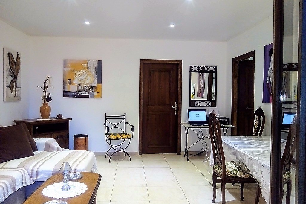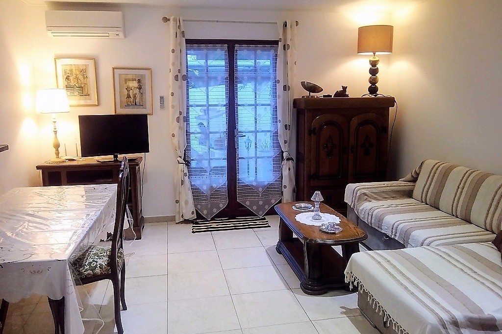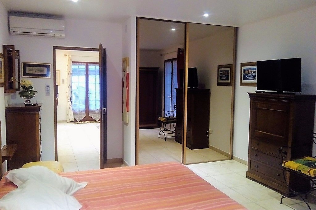 Entièrement climatisé, d'une surface de 50 mètres carrés, la location comprend un séjour avec TV écran plat et WIFI. Une cuisine, semi-ouverte sur le séjour très bien équipée : plaques de cuisson induction, four, micro-ondes, lave-vaisselle, lave-linge, tout le nécessaire de cuisine, petit électroménager. La chambre possède un lit en 160. Grand canapé-lit dans le salon. La salle d'eau est aménagée avec douche italienne, lavabo double vasques, radiateur sèche serviette, wc suspendu. En plus, un second wc indépendant avec lave-main.