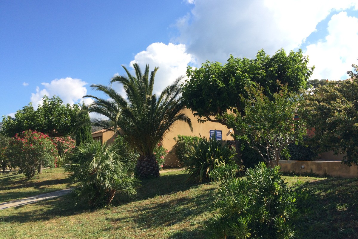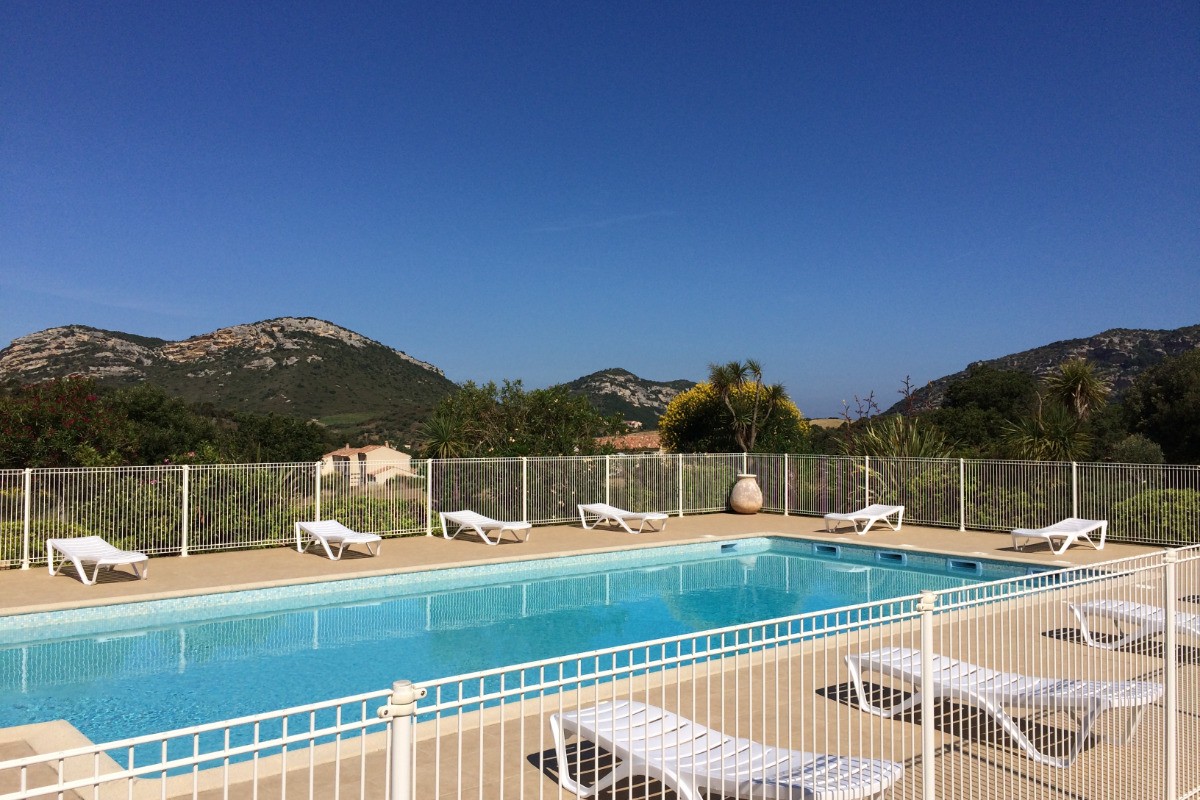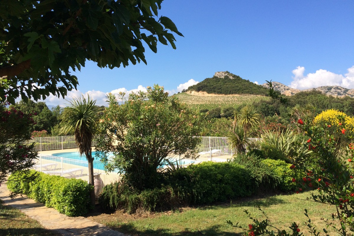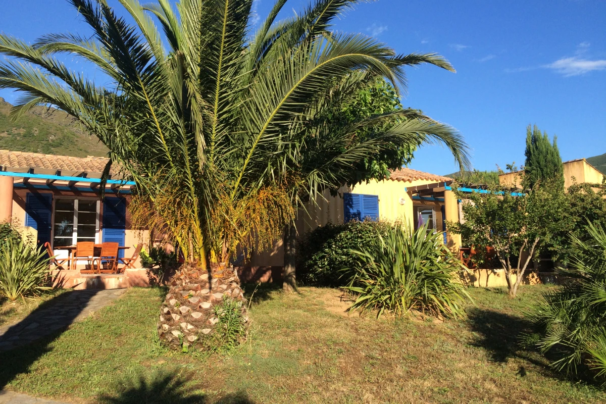 N°5 : Au coeur d'un vignoble, à 4 km de la mer et de Saint-Florent, avec jardin de 10000 m², parking privé, piscine réservée à la résidence et buanderie avec lave-linge. Location de draps. Maison mitoyenne de type F2 (50 m²) de plain-pied, avec terrasse, salon de jardin et barbecue. Séjour/salon avec 1 lit-tiroir en 90, TV ; coin cuisine avec four, micro-ondes ; salle d'eau avec WC ; 1 chambre avec 1 lit en 140 et 1 lit en 90.